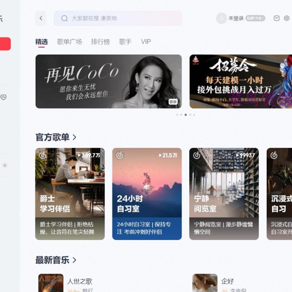 网易云电脑版,网易云音乐播放器,网易云音乐客户端去升级绿色便携版