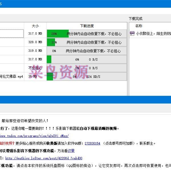 乐影音下载器是一款个人开发的强大视频下载工具,可以免费下载几乎所有国内视频网站上的视频,能够自动下载最清晰的视频,自动合并分段视频,你只需复制视频的网址就能自动下载,下载视频从未如此简单!