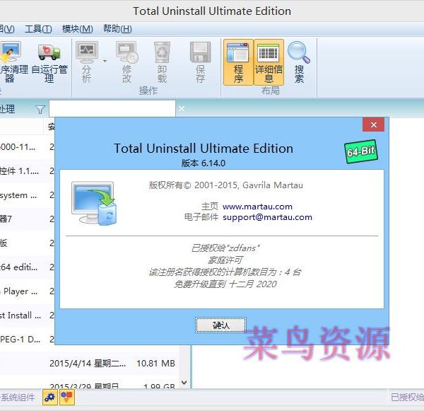 最强安装监控和卸载利器Total Uninstall旗舰版来啦,目前最新版为v6.14,现在特别版已更进!旗舰版是最豪华最贵的版本,具有所有功能。本站提供的Total Uninstall 绿色便携版特别版,启动即为旗舰版,无需注册密钥,无需屏蔽联网不反弹!新版TU安装程序的分析时间及批处理过程大幅提升!