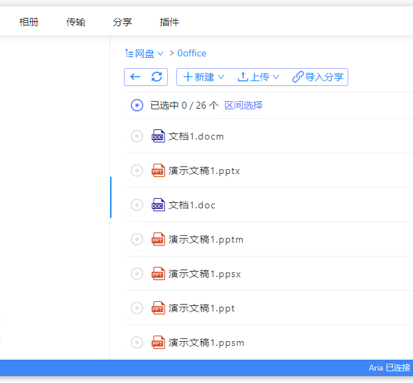 – 连接到远程 Aria2 下载、上传文件、上传文件夹、批量改名、在线解压、回收站、收藏夹