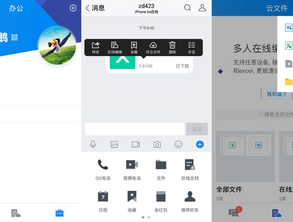 联系人:QQ登录后,联系人全同步,还可以将部分不常用联系人隐藏。