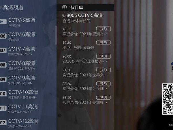 电视家TV,智能电视及机顶盒电视直播APP,应用由企业开发,拥有大量稳定高清频道,数字频道、经典电影专栏等。电视家2.0,支持直播时移、直播回看预约、高清/超清直播源切换,可自建频道自定义分享码。