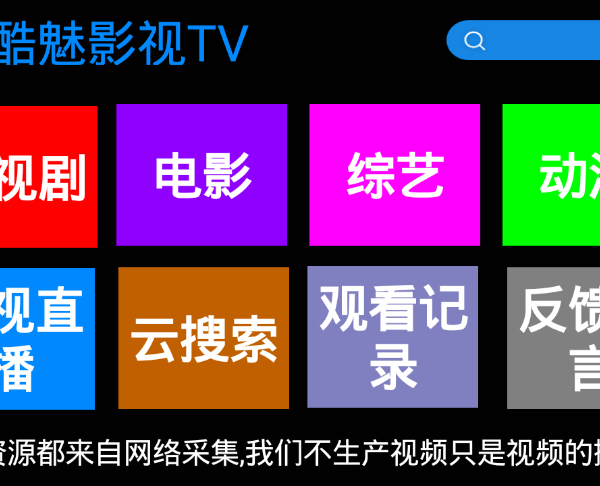 酷魅影视TV,智能电视及机顶盒影视点播及电视直播APP,个人开发免费无广告的影视聚合应用,智能挖掘网络影视资源网站接口源并自动解析,免费观看院线上映大片、付费电影、HD高清视频,有电视直播频道。