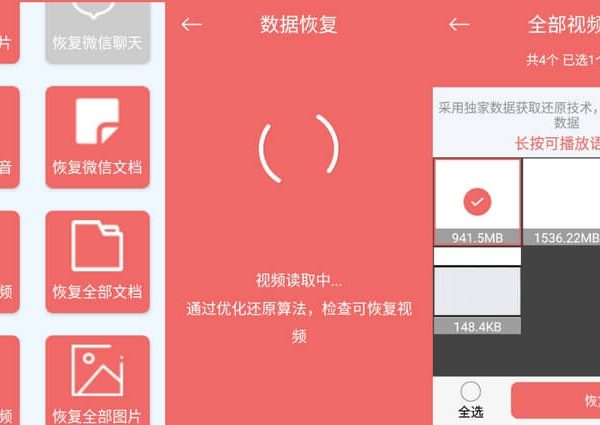 安卓数据恢复大师,微信数据及手机部分数据恢复的大师级应用工具,采用加密算法,恢复成功率高,恢复微信图片、微信聊天、微信语音、微信文档、微信视频,恢复全部文档、全部视频、全部音频、全部图片。