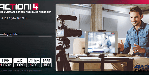 Mirillis Action中文破解版(暗神屏幕录制软件)是一款专业的高清屏幕录像软件,Action!录像工具及游戏录像软件,拥有三大硬件加速技术,支持120帧的1080P/4K/HDR超清画质录制录制桌面任何区域和实况直播,提供超高清编码MP4(H.264/AVC)支持,录制加密视频,显示游戏帧率,添加实时评论,游戏视频解说等.