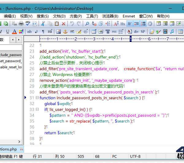 ES-Computing EditPlus中文版是一款小巧强大的代码文本编辑器,可处理文本,网页和程序语言的文字编辑器,EditPlus汉化破解版也可以将它作为C/Java/Php等语言的简单IDE调试编辑工具.最新版支持HTML, PHP, Java, C / C ++, CSS, ASP, Perl, JavaScript, VBScript, Python, Ruby on Rails语法高亮显示,而且可以自定义代码方案对其它编程语言扩展,HTML/CSS1指令功能非常完整;此外,还具有FTP/FTPS/sftp功能,十六进制查看器,HTML编辑器,cliptext,颜色标记,监视剪贴板,正则表达式批量搜索和替换,定制键盘快捷方式等功能.
