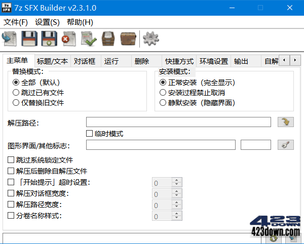 7z SFX Builder是一款7Z自解压生成器,这款自解压程序制作工具是在7-Zip自解压模块7z SFX的基础上开发,可以轻松创建7z SFX配置文件,生成自解压形式EXE可执行文件,可以预设自解压文件各种设置参数。