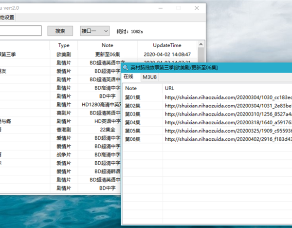 一个小巧的影视资源搜索工具,基于M3U8文件在线播放源的资源搜索工具,内置5个影视搜索引擎接口,搜索出来的影视M3U8源文件在线地址可以直接打开播放。接口在config.ini配置里,可以自行增加删减。