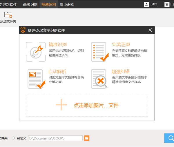 捷速OCR文字识别软件是一款专业的图像文字识别软件,提供图片文字识别、扫描文字识别、pdf文字识别、图像识别等文字识别服务,并且可以批量转换。采用先进的精准识别技术,识别正确率高,识别速度快,对图文混排文档可自动解析,强大的文字识别纠错技术,完美还原文档结构和格式,无需重新排版。