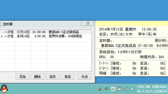 软件简介:CHKen Tray Clock 简称 (KClock)是一款任务栏时间增强工具, 可以显示农历,星期,甚至还可以定时提醒,目前网络状况以及 CPU 使用情况。CHKen Player 出品。绝对精品,强烈推荐!